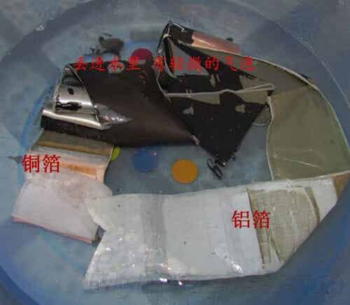 最后特寫一下電芯內(nèi)部的材料。圖中的銅箔,是用來(lái)涂布LiNi-Co-MnO2鎳鈷錳正極材料,反之,鋁箔是用來(lái)涂布石墨烯。電芯的容量,是根據(jù)這些配方的調(diào)配比例得來(lái)。模仿有風(fēng)險(xiǎn),拆解需謹(jǐn)慎。