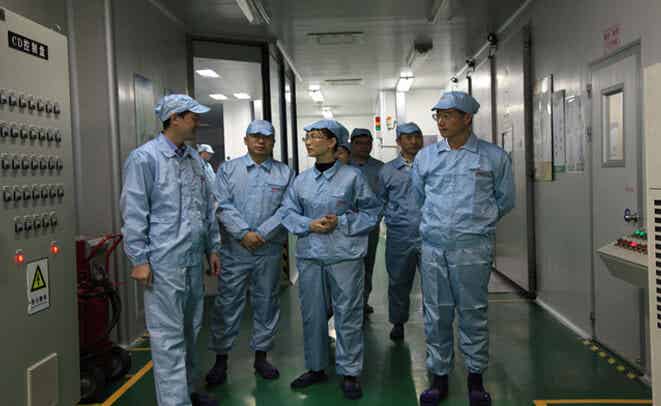 圖二:吳曉暉總經(jīng)理攜其余廣新控股領(lǐng)導(dǎo)進(jìn)入生產(chǎn)車間進(jìn)行參觀考察