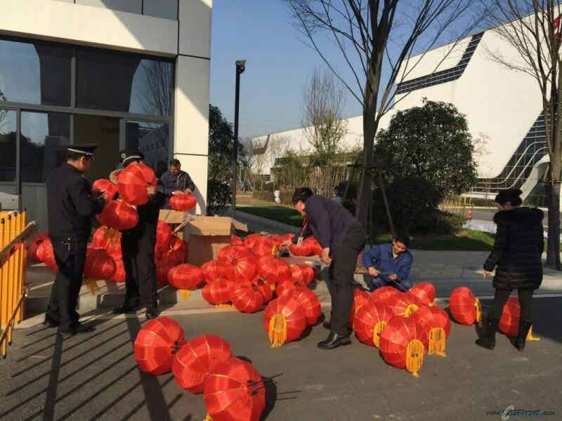 員工張燈結彩迎新春