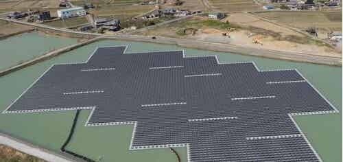 京瓷公開日本最大規(guī)模水上光伏電站建設現(xiàn)場