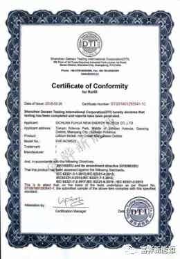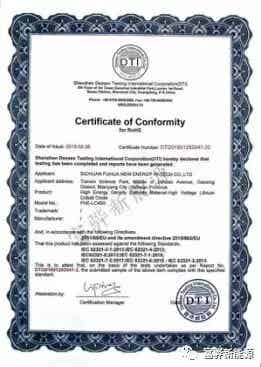 四川富驊新能源科技有限公司產品榮獲RoHS認證證書