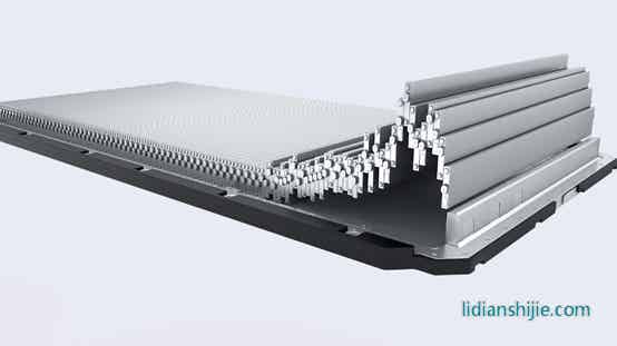 比亞迪刀片電池自身的強度來實現自我支撐,同時再依靠集成后的電芯強度來增加整個電池包的結構強度,100個刀片電池組成的電池排布在一起,并且上下兩面各加一塊高強度蜂窩鋁板,組成類蜂窩鋁三明治穩定結構。