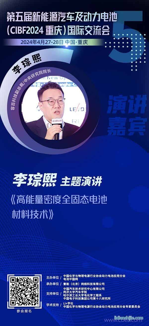 此外,2024年4月28日上午,寧波容百新能源科技股份有限公司集團副總裁/中央研究院院長李琮熙,將在“第五屆新能源汽車及動力電池(CIBF2024重慶)國際交流會”上,作題為《高能量密度全固態電池材料技術》的主題演講,分享其在全固態電池領域的最近研發進展。值得期待!