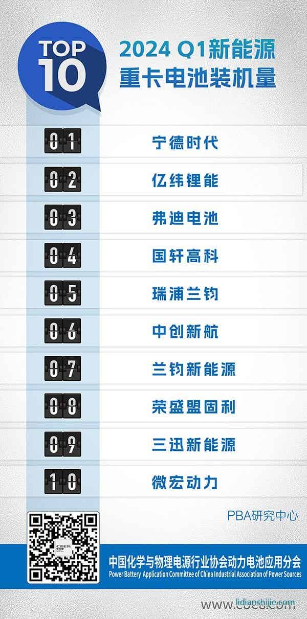動力電池應用分會數據顯示,今年1-3月,國內市場新能源重卡電池主要配套企業有寧德時代、億緯鋰能、弗迪電池、國軒高科、瑞浦蘭鈞、中創新航、蘭鈞新能源等。