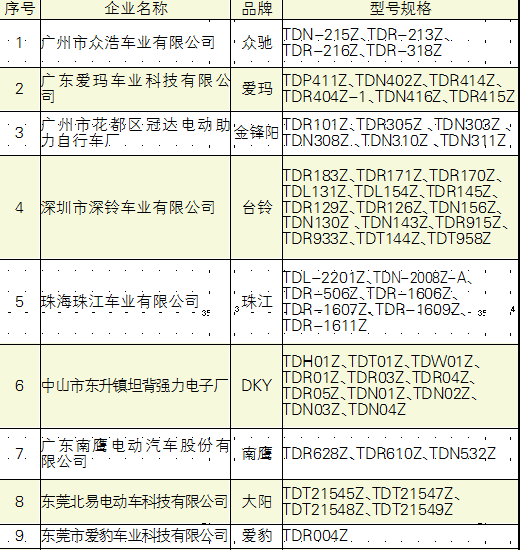 廣東省電動自行車生產企業及產品目錄(第一期)