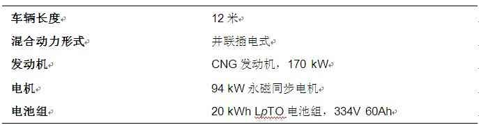 表2. 一款采用LpTO電池組的插電式混合動力公交客車基本參數