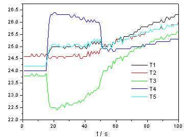 圖5100A充電過程各標定點溫度變化