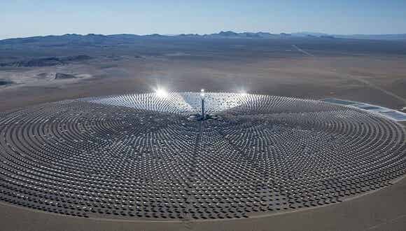 從飛經內華達上空的飛機往下看,新月沙丘(Crescent Dunes)光熱電站就像是在地表上的一道明亮閃光。你只有在地表上看才會了解到它是多么的龐大:近675.8公頃的沙漠被10347個公告牌大小的定日鏡所覆蓋,這個發電站所提供的電量足以支撐75000所家庭。