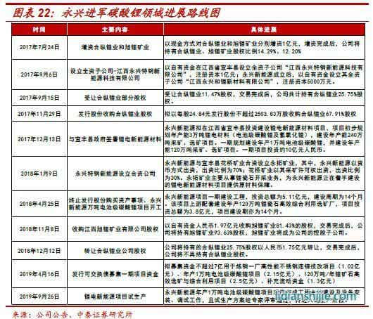 跨領(lǐng)域進(jìn)入碳酸鋰行業(yè):永興雖然長(zhǎng)期深耕不銹鋼棒線(xiàn)材領(lǐng)域,但上市以來(lái),伴隨著融資渠道不斷豐富,公司在做強(qiáng)原有主業(yè)的同時(shí),積極布局第二產(chǎn)業(yè)。經(jīng)歷長(zhǎng)期論證與探索之后,公司于2017年7月實(shí)現(xiàn)對(duì)合眾鋰業(yè)、旭鋰礦業(yè)的股權(quán)收購(gòu),正式宣布進(jìn)軍新能源上游材料領(lǐng)域-鋰云母原礦開(kāi)采及碳酸鋰生產(chǎn)。雖然公司在之后轉(zhuǎn)讓了合縱鋰業(yè)的相關(guān)股權(quán),但卻并未動(dòng)搖其持續(xù)加碼碳酸鋰行業(yè)的決心。2018年4月永興1萬(wàn)噸碳酸鋰項(xiàng)目在江西宜春市正式動(dòng)工,同時(shí)配套年產(chǎn)120萬(wàn)噸采礦項(xiàng)目。2019年12月公開(kāi)調(diào)研信息顯示,永興新能源碳酸鋰產(chǎn)線(xiàn)目前正處于調(diào)試階段,其中1號(hào)線(xiàn)設(shè)計(jì)產(chǎn)能5000噸已經(jīng)進(jìn)入連續(xù)生產(chǎn)狀態(tài),2號(hào)線(xiàn)則處于有條不紊的試生產(chǎn)之中,公司在碳酸鋰項(xiàng)目上的快速推進(jìn)為其新能源戰(zhàn)略的落地打下了堅(jiān)實(shí)基礎(chǔ);