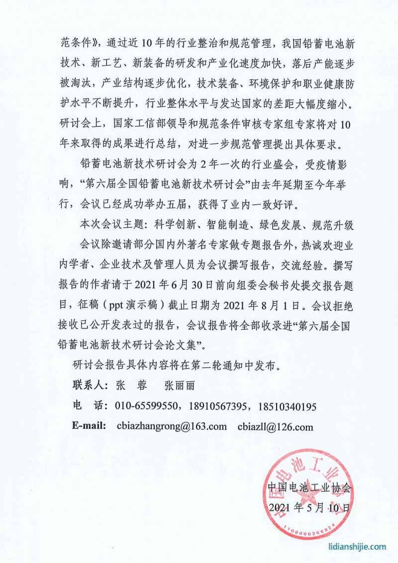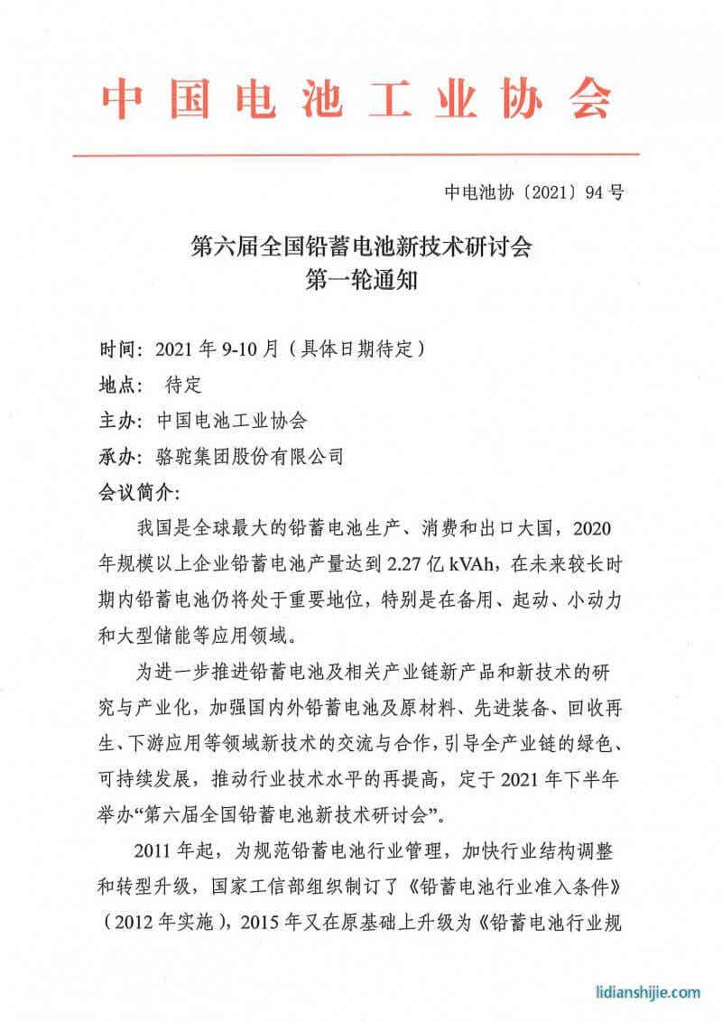 第六屆全國鉛蓄電池新技術研討會第一輪通知 2021-06-26 27900 核心提示:第六屆全國鉛蓄電池新技術研討會第一輪通知 第六屆全國鉛蓄電池新技術研討會第一輪通知 點贊 0舉報收藏 0打賞 0評論 0分享 90 更多>同類鋰電資訊 • 容誠電子落地濟源 萬洋拓展鋰電領域新布局 • 資源稅對鋰礦成本的影響 • 美國轉向油車開始取消亞洲鋰電池訂單,美股鋰電 • 鋰電池打響漲價“第一槍”,德加能源電池系列價 • 感覺未來主流會是大電池增程 • 德方納米榮獲2025年度正極材料優質供應商稱號 • 奔馳正加速推進電動車固態電池上車進程 • 磷酸鐵鋰電池漸成市場主力 • 迷之碳酸鋰庫存 • 鋰電產業鏈周記 | 寧德時代聯手五大車企發布10