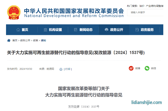 據國家發展改革委網站10月30日消息,國家發展改革委、工業和信息化部、住房城鄉建設部、交通運輸部、國家能源局、國家數據局等六部門日前發布關于大力實施可再生能源替代行動的指導意見。