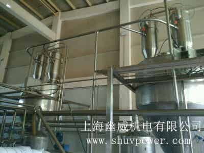 今天可大家分享的是蒙脫石輸送混合包裝。工藝流程:某設備出來的粉,進我們的緩存罐—--緩存罐底部出料口連接真空上料機---振動篩過篩---稱重計量罐-真空上料機-混合機-混合后的物料放到儲料罐內靜置一段時間。