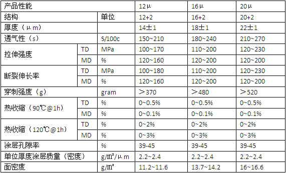 常備規(guī)格:12μ、16μ、20μ