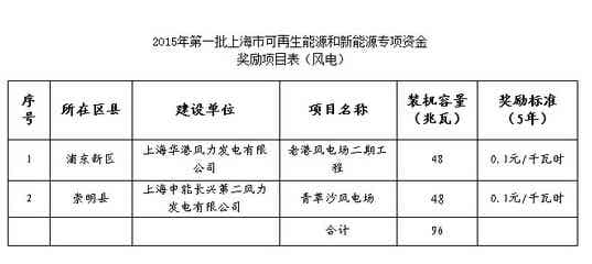根據《上海市可再生能源和新能源發展專項資金扶持辦法》(滬發改能源〔2014〕87號,以下簡稱《扶持辦法》),市發展改革委會同相關部門和單位,組織開展了2015年第一批可再生能源和新能源發展專項資金扶持項目的申報和評審工作。在專家評審意見的基礎上,經審核,青草沙等2個風電項目(共96兆瓦)、上海西華國際學校等27個分布式光伏項目(共9100.26千瓦)和389戶個人光伏(共2097.049千瓦)符合條件,擬列入市可再生能源和新能源發展專項資金獎勵目錄予以支持(詳見附表)。