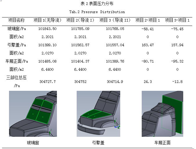 (2)三個項目的迎風阻力依次由2358N(項目1)降低至2111N(項目2),再降低至1761N(項目3),可知項目3的迎風阻力是三者最低的。